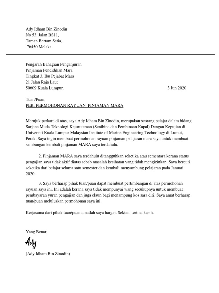 Surat Rasmi Permohonan Rayuan MARA PDF